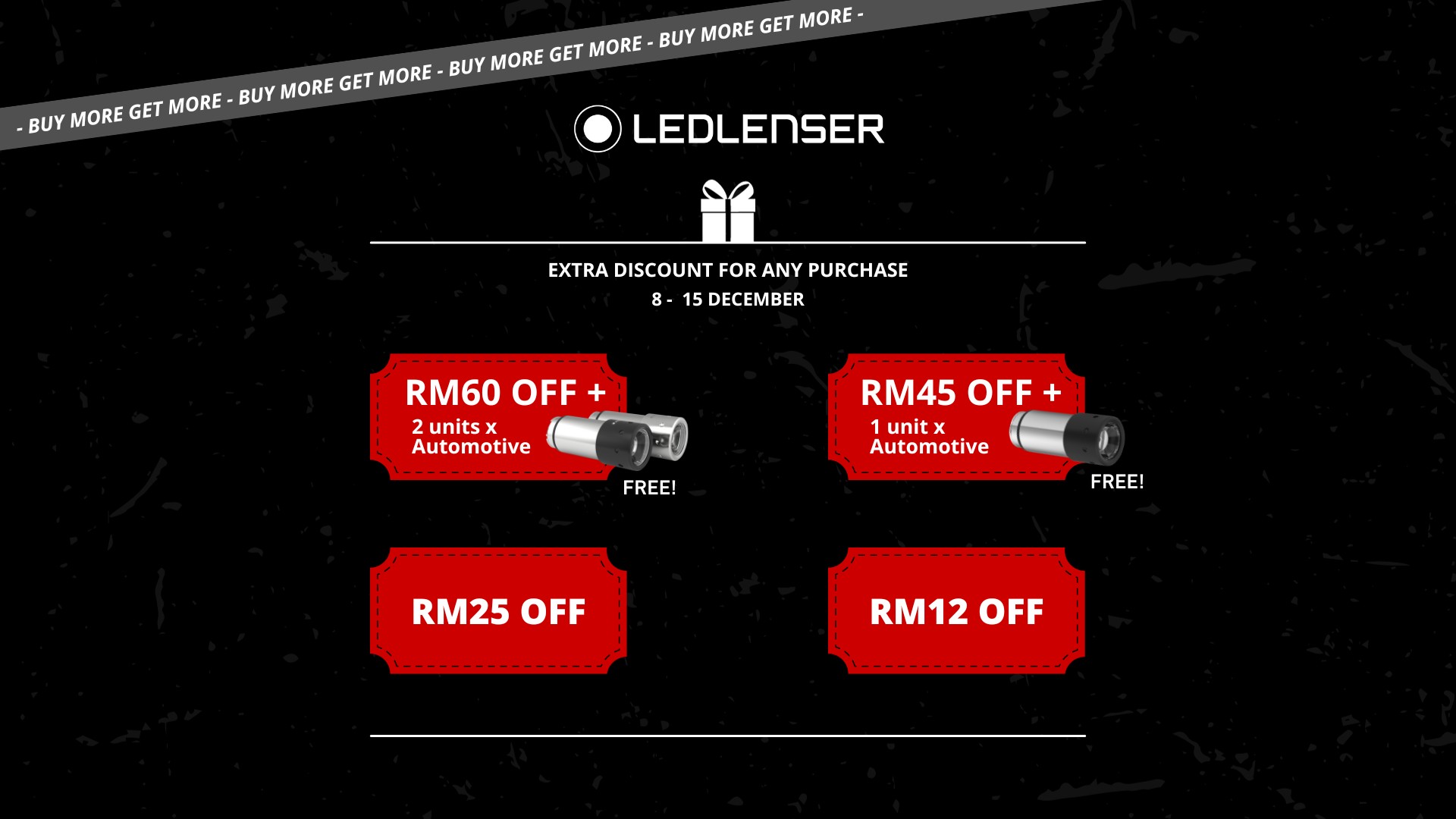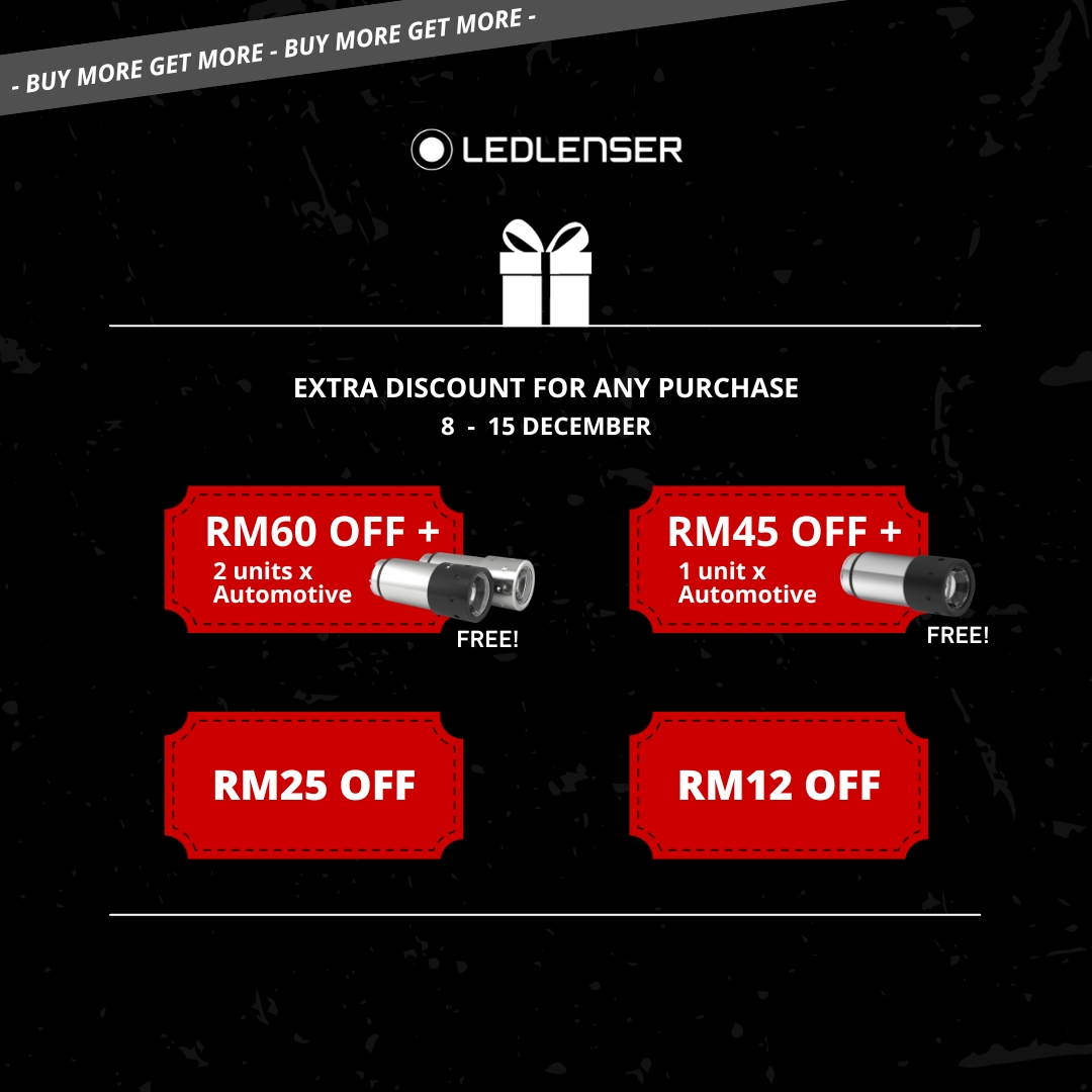 - RM60 off and up to 2 pieces of free Automotive flashlight when you shop during this sale.