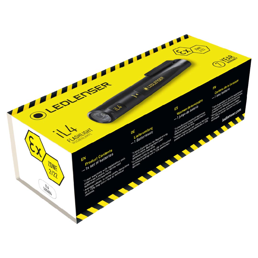 As small and handy as a pen but as rugged and most importantly as safe as other lamps in the iL series: The Ledlenser iL4. Designed specifically for environments where explosive atmospheres such as flammable gases, vapors or dust clouds can occur for a short period. And yet it’s the cheapest lamp in the iL series. So not even costs will explode.