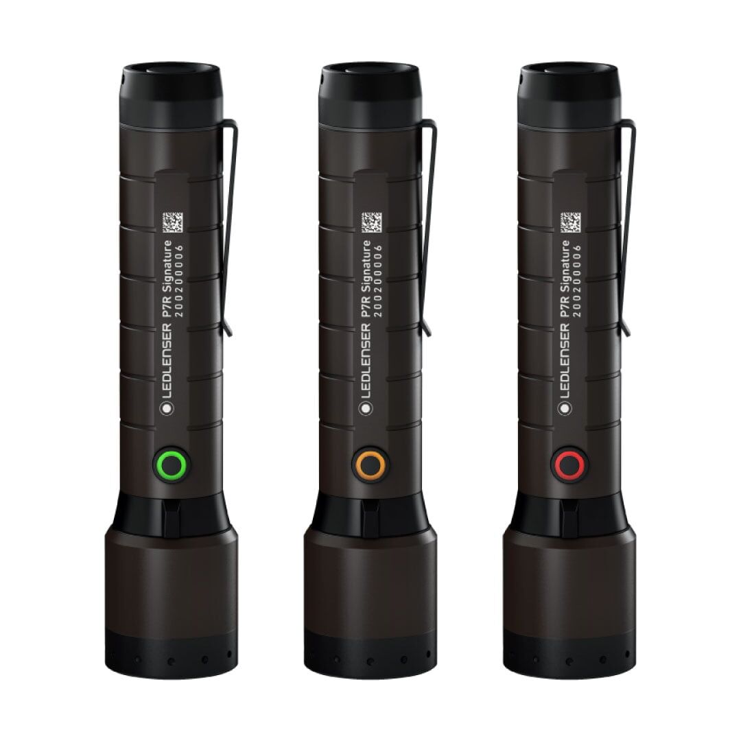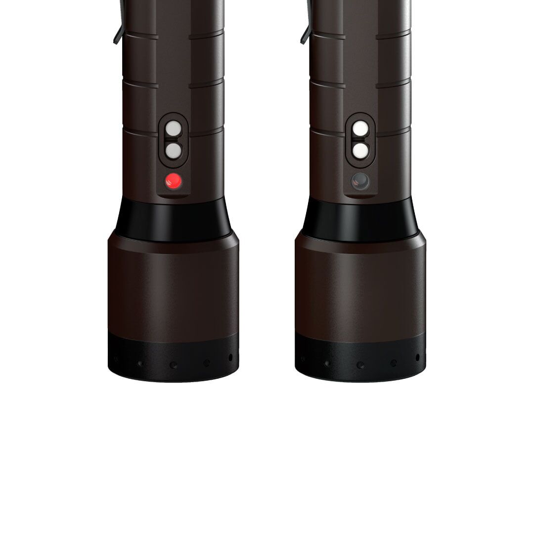 In addition to all the basic features of the Core models, the P6R Signature and the P7R Signature have a programmable Mode Switch on the head of the lamp, which can easily select preferred light functions. This allows direct access to the strobe or red-light function, for example. The red light is located on the side and helps preserve night vision, in case only short-term additional light is needed.